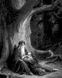 C'est l' "enfant sans père ", fils d'un démon et d'une nonne, mais qui échappa au diable par le baptême. Merlin, qui reçut pouvoir et science de savoir des choses passées, présentes et à venir, savait " transformer l'apparence des gens ", avait permis à Uterrpendragon d'entrer dans le château du duc de Tintagel et d'y concevoir Arthur avec Ygerne. Ni homme ni dieu, devin et magicien, Merlin rencontra la fée Viviane, la dame du lac, au cœur de la forêt de Brocéliande. La légende raconte que Merlin, par amour, lui confia peu à peu tous les secrets de son art, jusqu'au pouvoir de retenir un homme à jamais. Viviane s'en empara pour le garder prisonnier dans " neuf cercles " immatériels au cœur de la forêt.