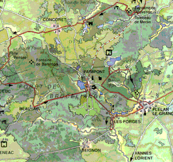 La forêt de Paimpont, mythique Brocéliande des légendes arthuriennes, s'est appelée Brécélien jusqu'à la Révolution. Elle se trouve de part et d'autre du bourg de Paimpont : la basse-Forêt à l'est et la Haute-Forêt à l'ouest. Elle est composée de futaies, de taillis, de landes ezt de tourbières, elle possède aussi de nombreux étangs et ruisseaux.